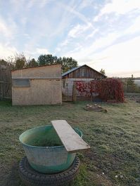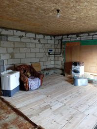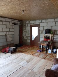 Продается земельный участок с жилым помещением площадью в 49,3м (недострой) и гаражем в деревне Сорочкино, 1км от города